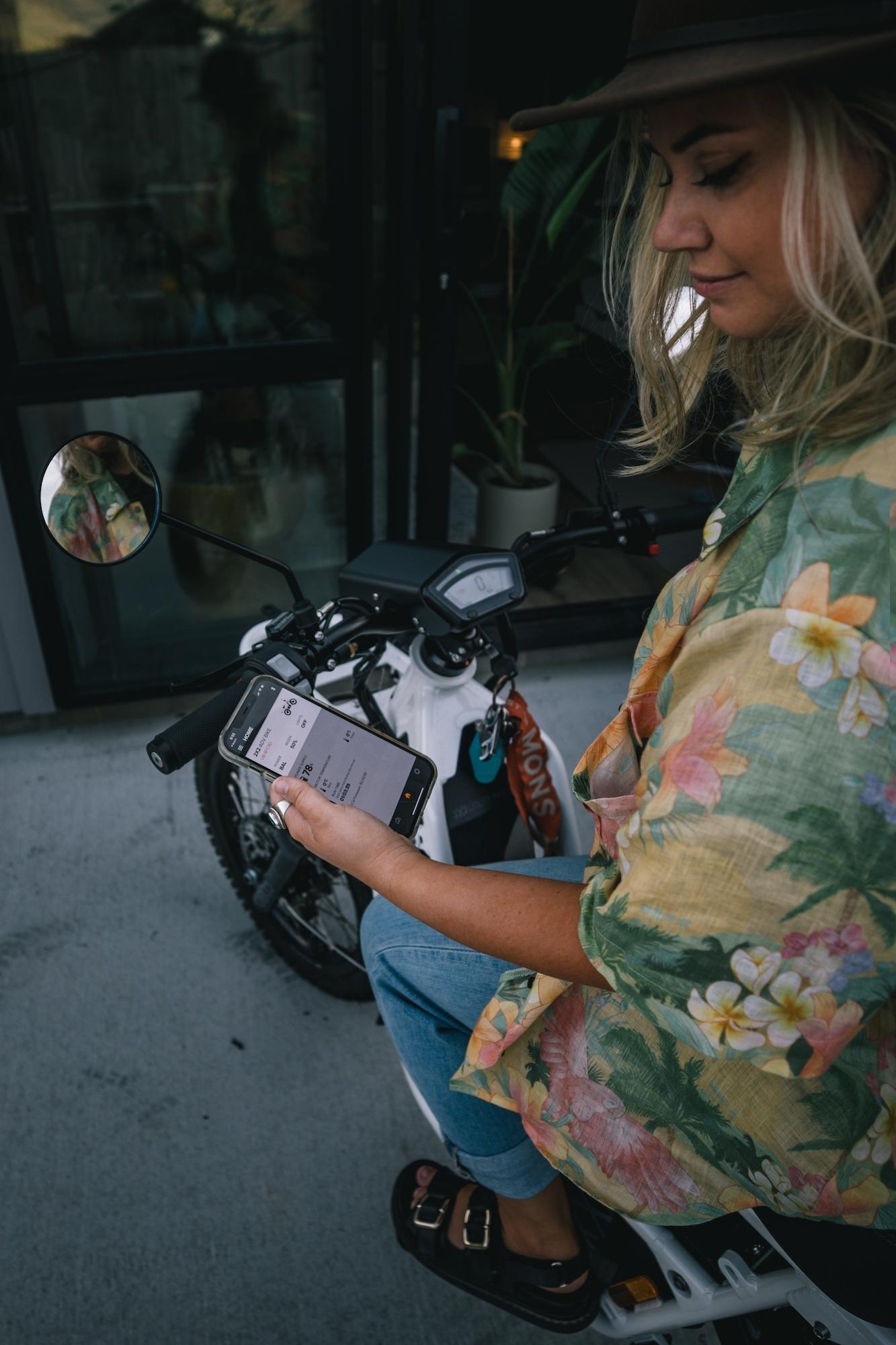 Something that I love, especially as someone who knows zero about troubleshooting a motorbike, is that there’s an UBCO app where you can see and control so much of the bike from your phone.